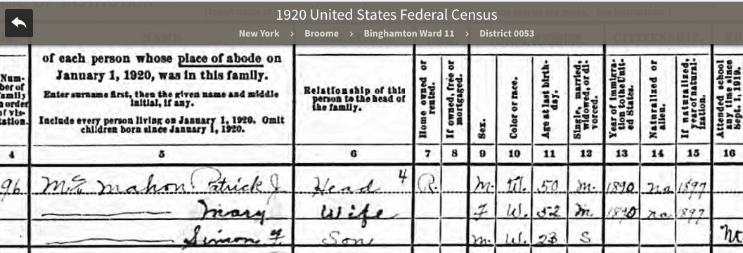- example of 1920 census